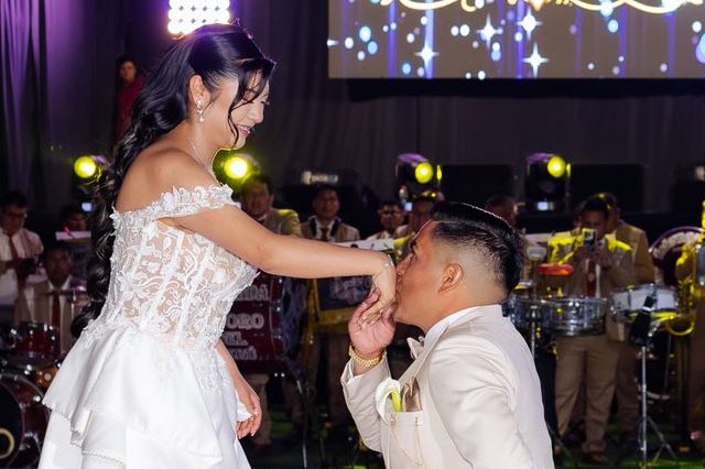 Flor y Niquer ingresaron al final -al local techado- bailando , primero una balada, con coreografía dancística y luego al son de la banda Santa Cecilia de Catac el danubio azul. Y todos los familiares salieron a la pista de baila para bailar con Flor y Niquer.