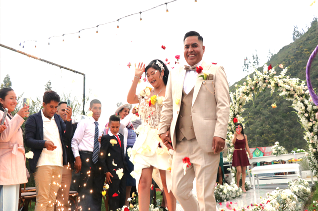 Y casi al final, cuando la notaria les dijo a Flor aceptas a Niquer como esposo y luego le dijo a Niquer aceptas a Flor como esposa, llegó la bendición de Dios con una tenue lluvia al principio y luego una persistente lluvia a chorros., Pero ya había acabado la ceremonia y todos los invitados ingresaron al local techado y con mesas redondas con sus respectivas sillas.